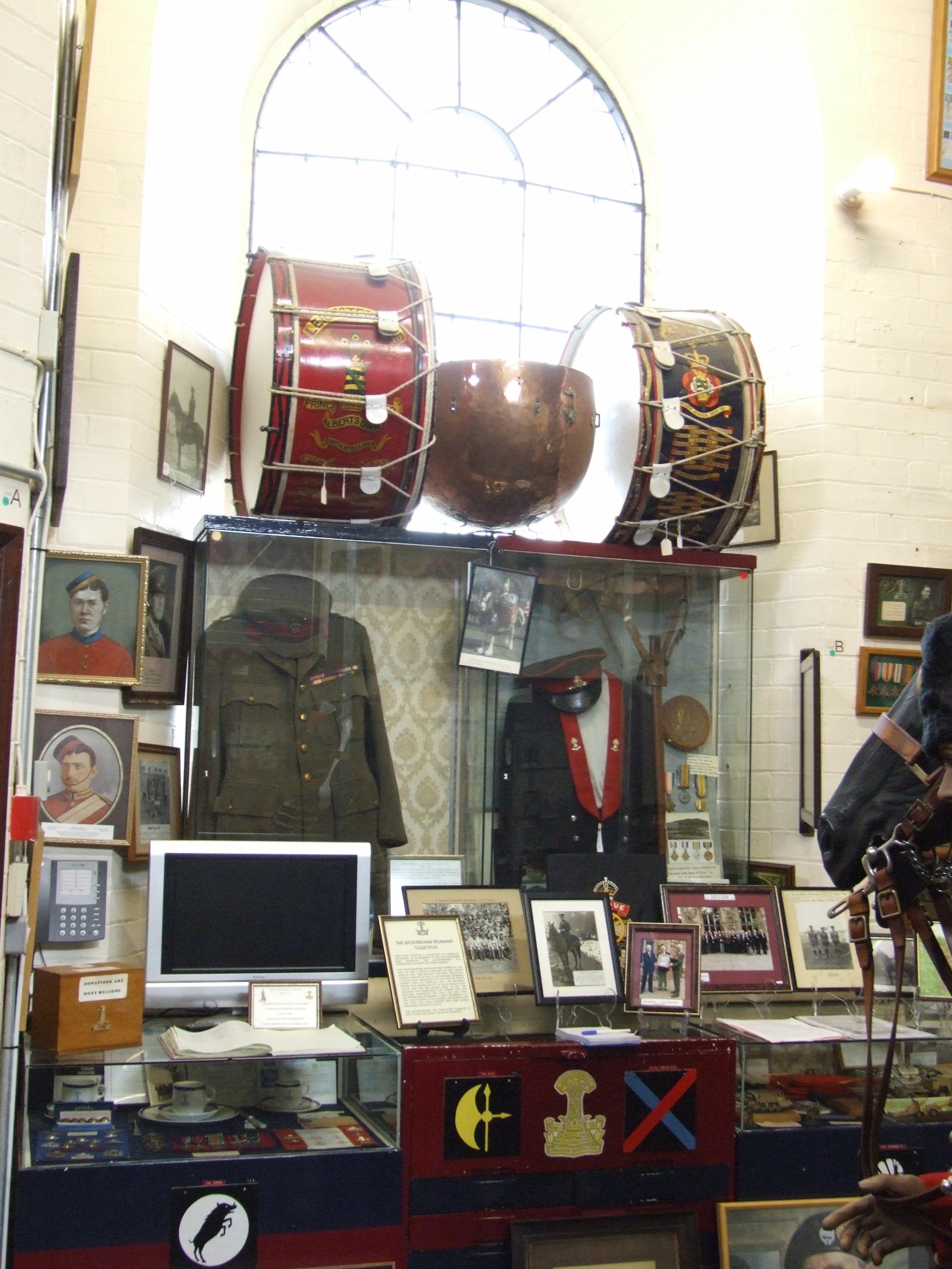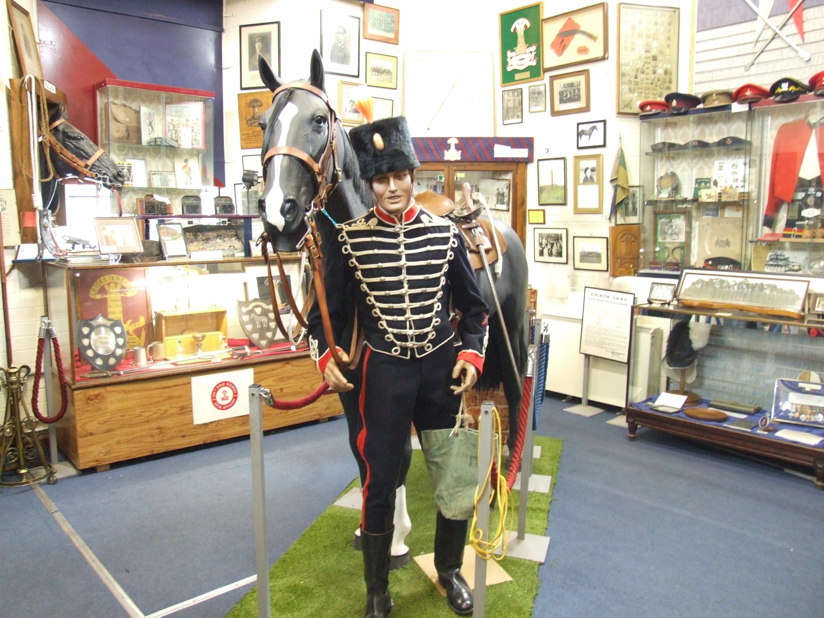 Much of this room is dedicated to the Leicestershire Yeomanry and is dominated with a full sized model horse with a soldier in dress uniform.