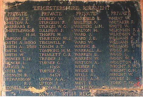 1st Bn, Leicestershire Regiment. Killed in Action 29th June 1915, Aged 27. Commemorated Ypres (Menin Gate) panel 33.
