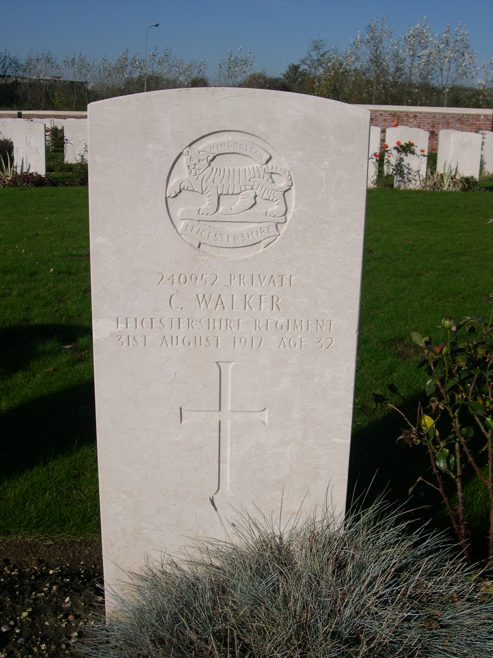 7th Bn, Leicestershire Regiment. Killed in Action 1st October 1917, Aged 22. Buried Buttes New British Cemetery XXVI. B. 10.
